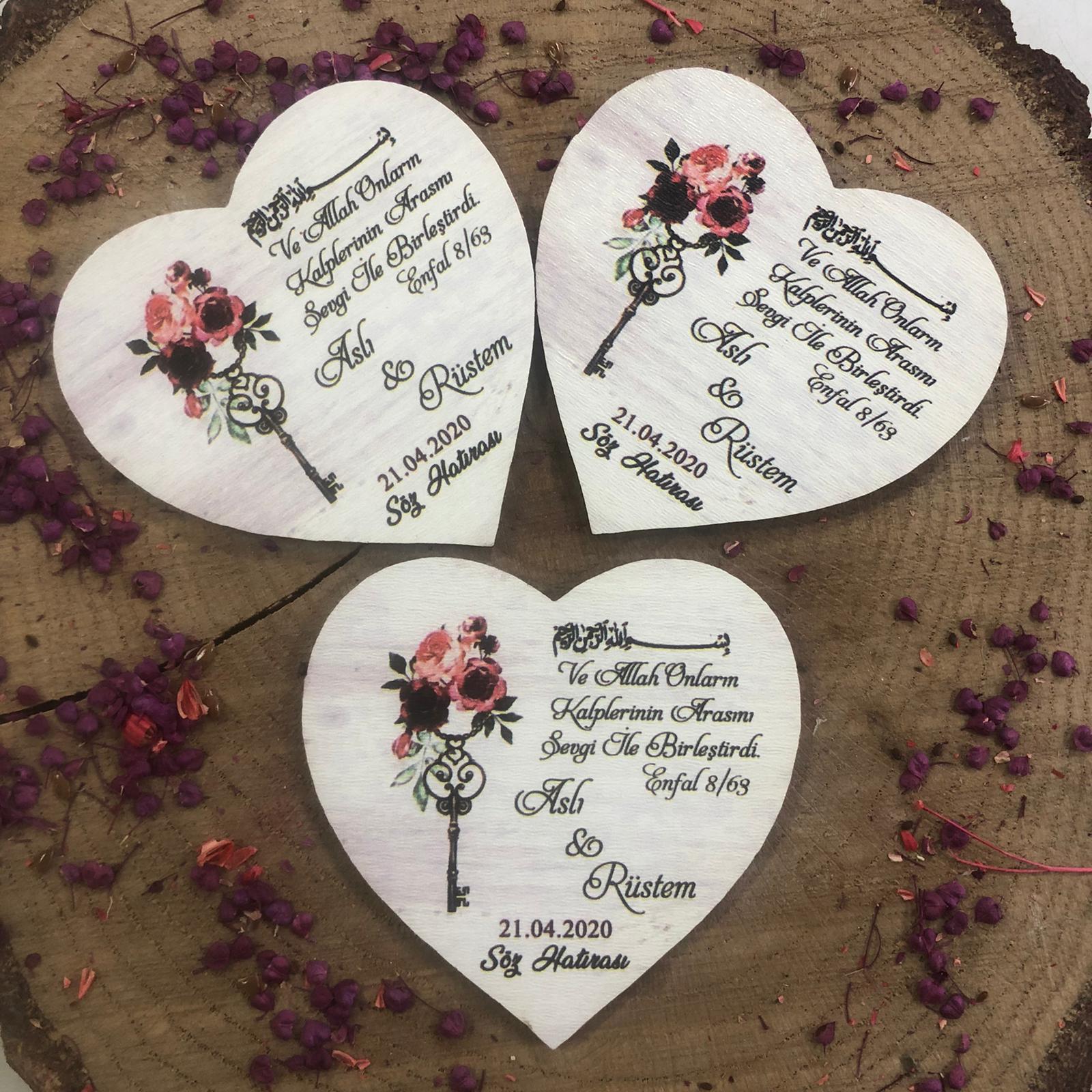 6 cm çapında, kalp kesim, Ahşap (MDF) size özel baskılı, 1 mm kauçuk özel mıknatıslı, mag...